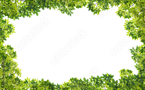 The watermark will not be included on Wall mural.: Frame of green leaves on background with center space