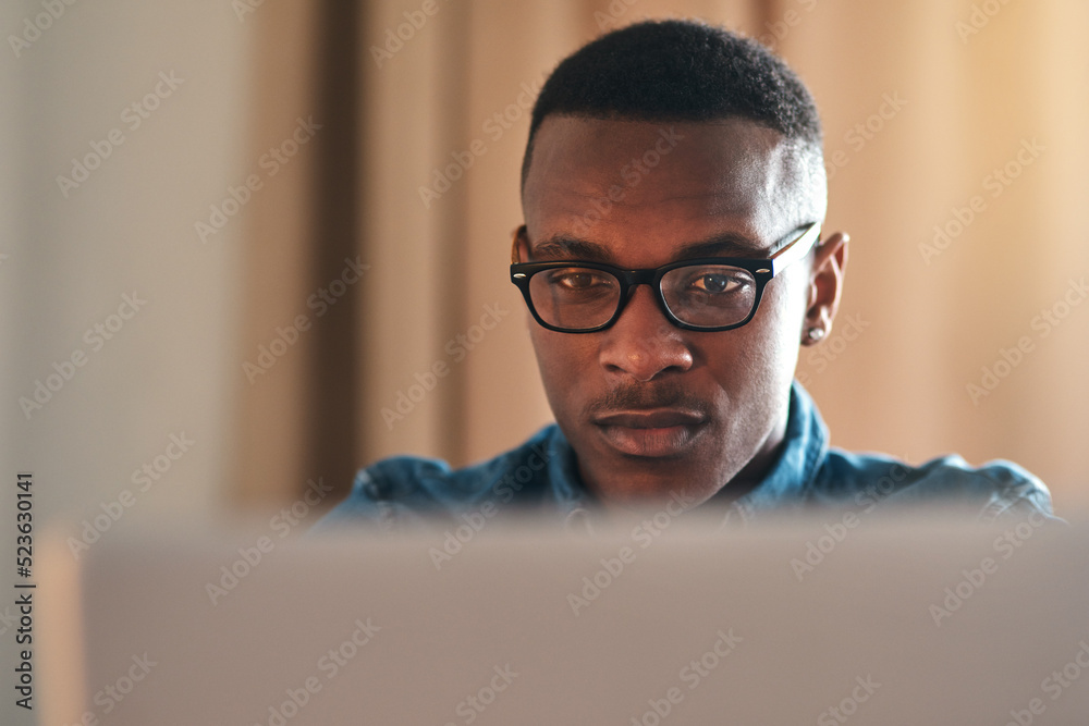 The watermark will not be included on Wall mural.: Freelance web designer with laptop thinking of website ideas, planning webpage and coding on technol