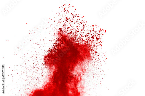 Wall mural freeze motion of red powder exploding, isolated on white background. abstract design of red dust clo