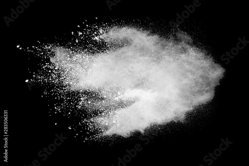 Wall mural : Freeze motion of white color powder exploding on dark background -