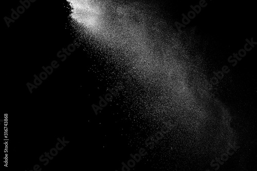 Wall mural : Freeze motion of white color powder exploding on dark background -