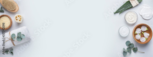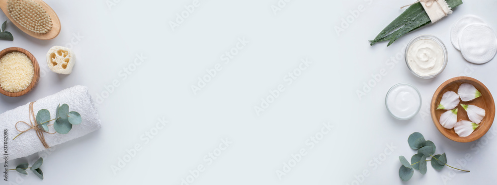 Wall mural fresh aloe and spa accessories, beauty treatment and aromatherapy cream