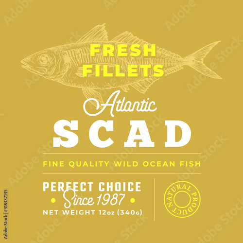 Wall mural fresh fillets premium quality label. abstract vector fish packaging design layout. retro typography