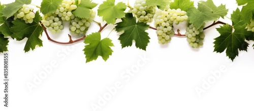 The watermark will not be included on Wall mural.: Fresh grape vine branch on white backdrop with copy space image -