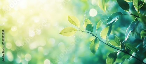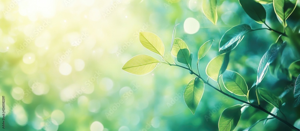 Fresh green leaf texture with backlight and soft bokeh effect for nature and environmental themesWall mural