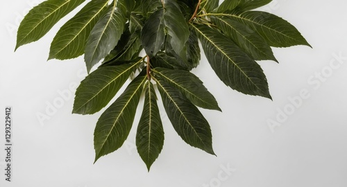 Wall mural fresh green tree leaves isolated on white background with ample space for text or design elements - Wall murals Wall mural fresh green tree leaves isolated on white background with ample space for text or design elements - Wall murals