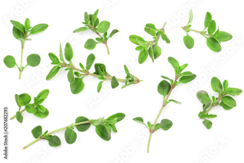 Wall mural fresh thyme spice isolated on white background with copy space for your text. top view. flat lay pat