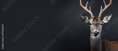 Wall mural : Front view of a axis deer on black background - wild animals banner with empty copy space