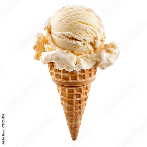 Wall mural : Front view of a delicious looking single apple pie ice cream scoop on a cone levitating in the air i