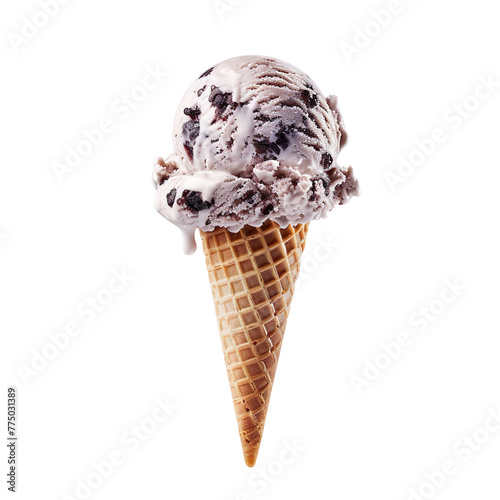 The watermark will not be included on Wall mural.: Front view of a delicious looking single taro ice cream scoop on a cone levitating in the air isolat