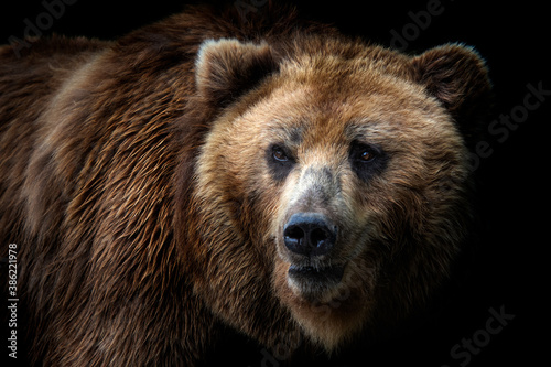 Wall mural front view of brown bear isolated on black background. portrait of kamchatka bear (ursus arctos beri - Wall murals Wall mural front view of brown bear isolated on black background. portrait of kamchatka bear (ursus arctos beri - Wall murals