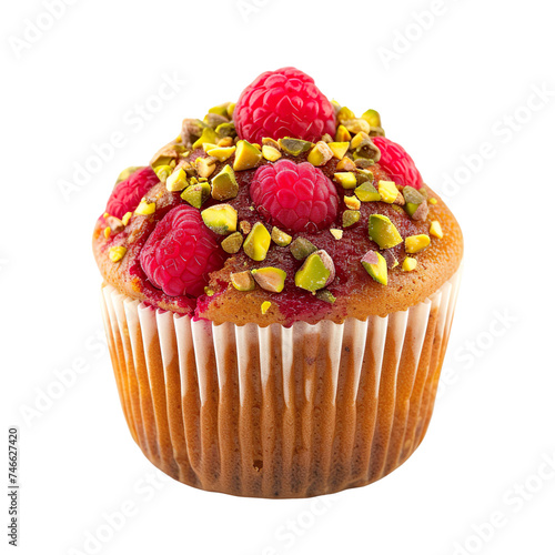 Wall mural : Front view of single raspberry pistachio muffin isolated on a white transparent background