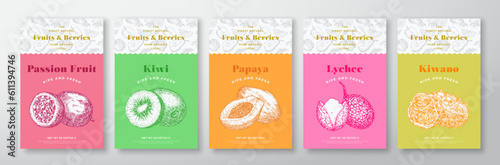 Fruits and berries pattern label templates set - vector packaging design layout collection - modern tyWall mural