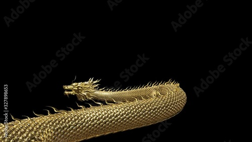 Wall mural : Full body gold dragon in smart pose with 3d rendering animation include alpha path -