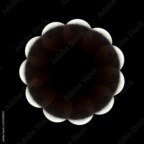 Wall mural full eclipse moon mosaic showing size of earth's shadow. size of this shadow is a result of distance