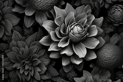 The watermark will not be included on Wall mural.: Full frame of black flowers background, created using generative ai technology