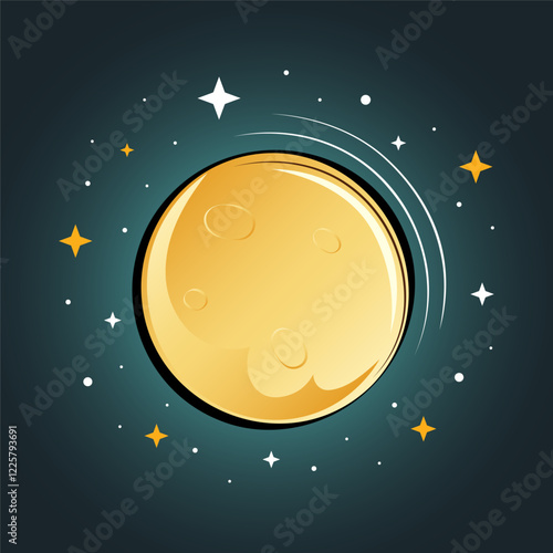 Wall mural : Full moon and star night cute icon weather, isolated on dark background, lunar, dream, lullaby, astr