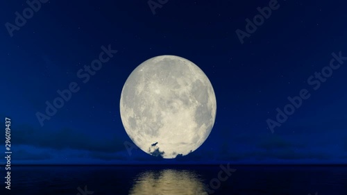 Wall mural full moon and timelapse clouds against starry sky reflecting on water surface, 4k - Wall murals Wall mural full moon and timelapse clouds against starry sky reflecting on water surface, 4k - Wall murals