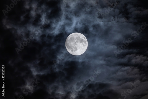 Wall mural full moon at night. the illuminated face of the moon is wrapped in a cloud cover that covers it in a - Wall murals Wall mural full moon at night. the illuminated face of the moon is wrapped in a cloud cover that covers it in a - Wall murals