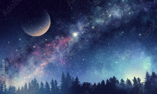Wall mural full moon in night starry sky - Wall murals Wall mural full moon in night starry sky - Wall murals