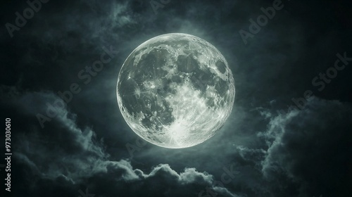 The watermark will not be included on Wall mural.: Full moon shining on cloudy night sky background -