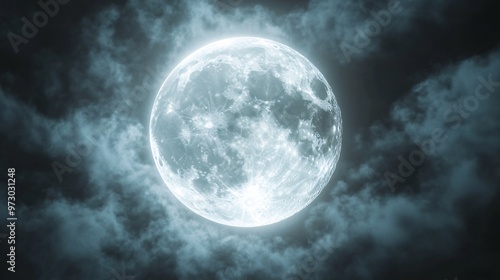 The watermark will not be included on Wall mural.: Full moon shining on cloudy night sky background -