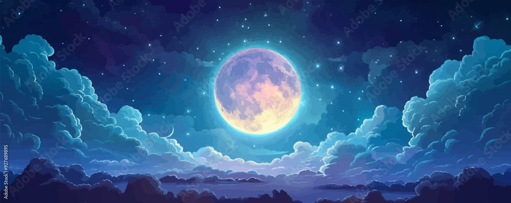 Wall mural full moon with clouds passing by. vector flat isolated.