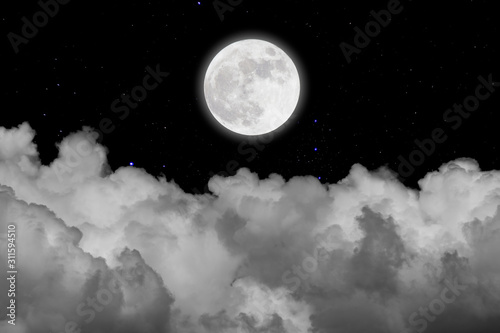 The watermark will not be included on Wall mural.: Full moon with starry and clouds background - romantic night -
