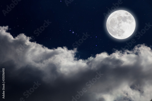 The watermark will not be included on Wall mural.: Full moon with starry and clouds background - romantic night -