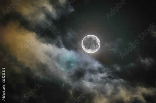 The watermark will not be included on Wall mural.: Full night moon shines alone in sky clouds