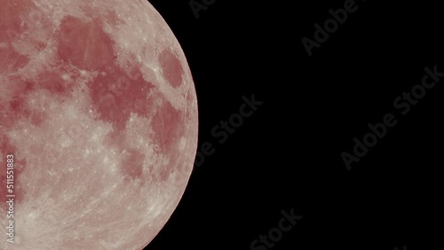 The watermark will not be included on Wall mural.: Full red moon moves fast at night sky - sharp footage of full moon with telephoto lens close-up - pink