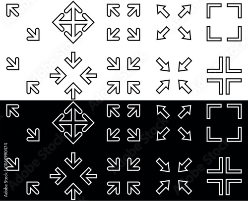 The watermark will not be included on Wall mural.: Full screen and exit full screen icons - arrow mark icons in different shapes - vector illustration is