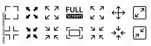 Wall mural : Full screen vector black icons - set of full screen and exit full screen icon - arrow mark icons - scal