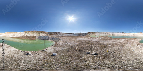 Wall mural full seamless hdri panorama 360 degrees angle view near quarry flooded with water for sand extractio