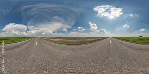 Wall mural : Full seamless spherical hdri 360 panorama view on no traffic asphalt road among fields in summer day