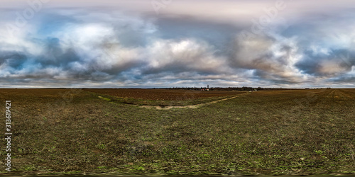 Wall mural : Full seamless spherical hdri panorama 360 degrees angle view among fields in autumn overcast evening