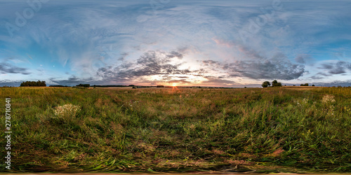 Wall mural full seamless spherical hdri panorama 360 degrees angle view among fields in summer evening sunset w