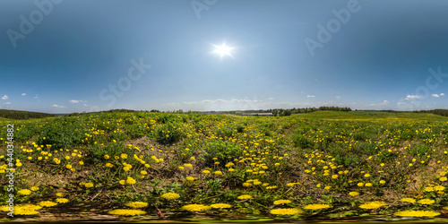 Wall mural : Full seamless spherical hdri panorama 360 degrees angle view on among dandelion flower field in summ