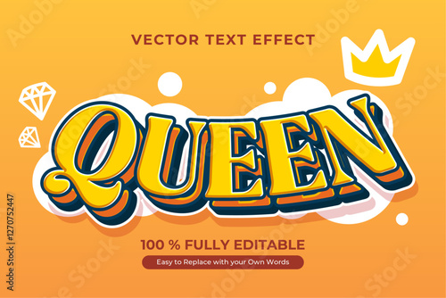 Wall mural : Fully editable queen text effect, perfect for adding a royal touch to your projects - easy to customi