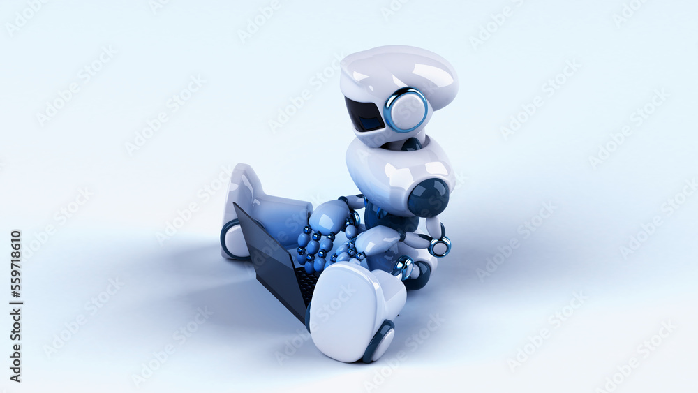 Wall mural fun 3d robot programming a laptop - Wall murals Wall mural fun 3d robot programming a laptop - Wall murals