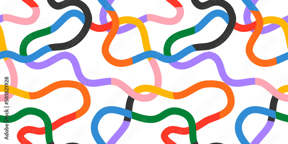 Wall mural fun colorful line doodle seamless pattern. creative minimalist style art background for children or
