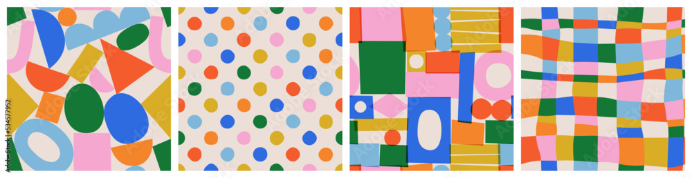 The watermark will not be included on Wall mural.: Fun colorful seamless pattern collection - creative 90s style geometric shape background for children