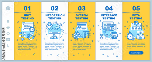 Functional software testing yellow onboarding mobile web pages vector template - responsive smartphonWall mural