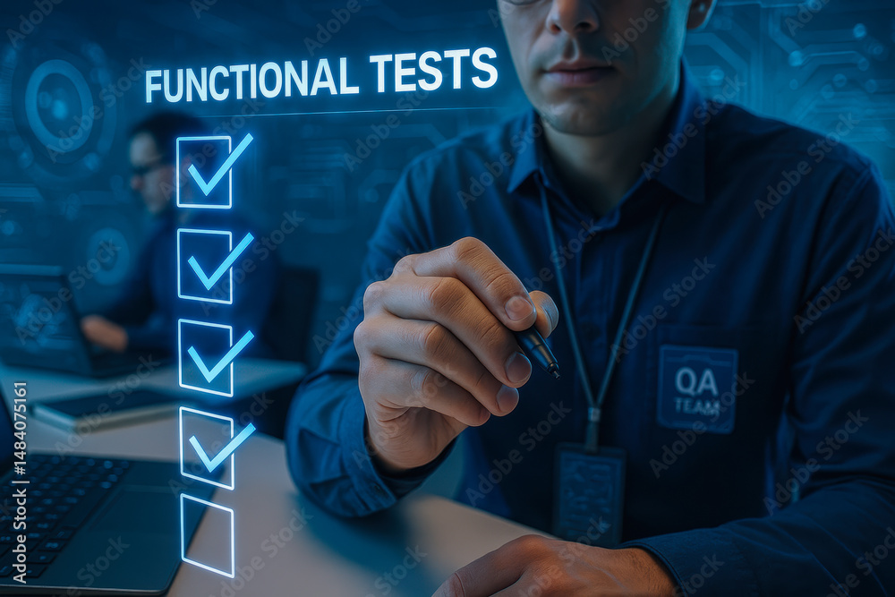 Wall mural : Functional tests checklist for computer engineering quality assurance ensures software reliability a
