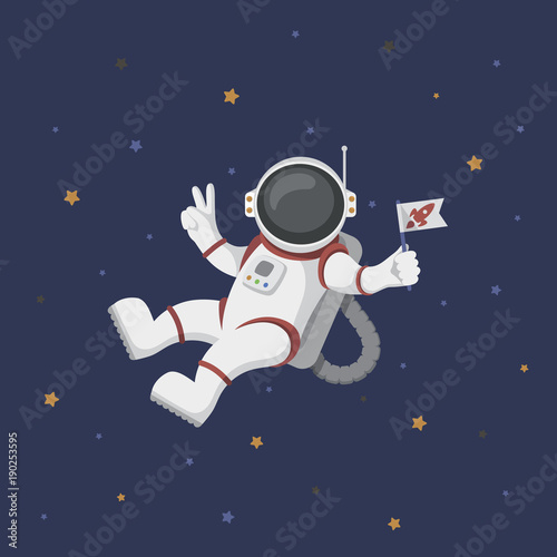 The watermark will not be included on Wall mural.: Funny flying astronaut in space with stars around