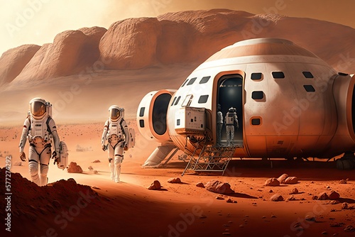 Wall mural future mission to mars, concept of astronauts and exploration, created with generative ai technology - Wall murals Wall mural future mission to mars, concept of astronauts and exploration, created with generative ai technology - Wall murals