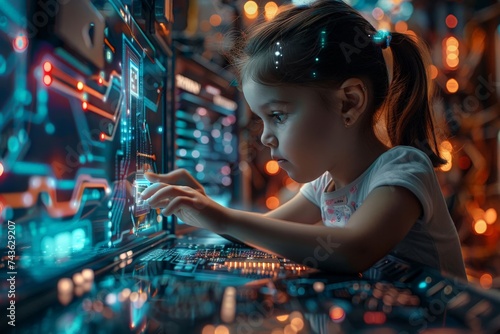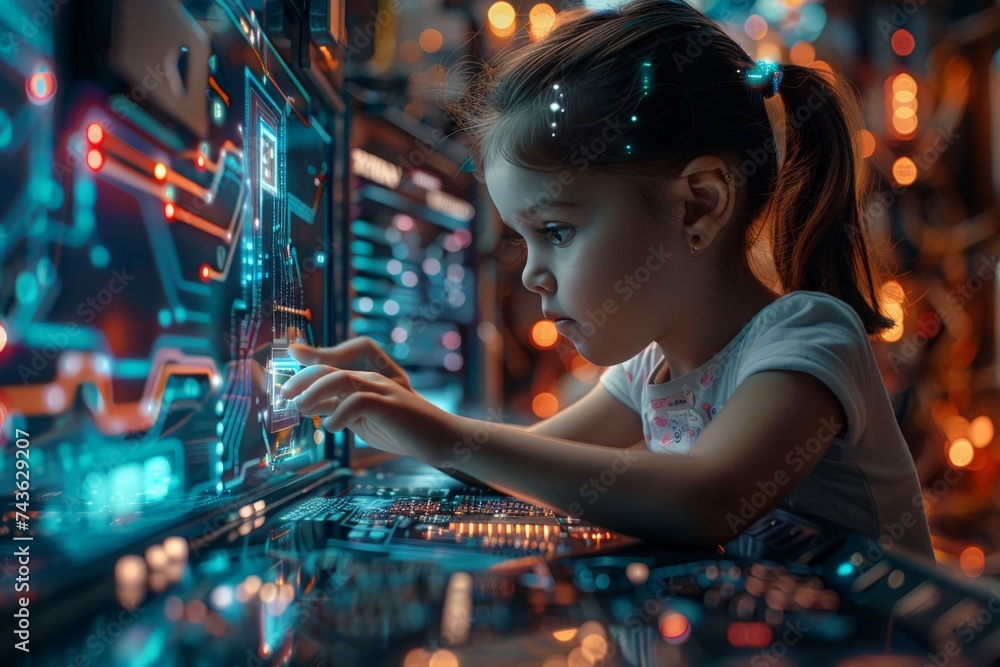 Wall mural future technology, augmented reality and cyberspace concept. education new technology. edtech. littl - Wall murals Wall mural future technology, augmented reality and cyberspace concept. education new technology. edtech. littl - Wall murals