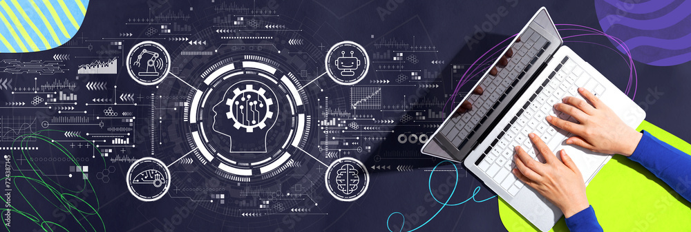 Wall mural future technology concept with person using a laptop computer - Wall murals Wall mural future technology concept with person using a laptop computer - Wall murals