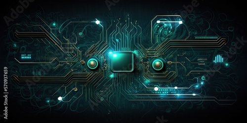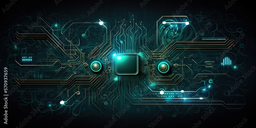 Wall mural future technology processing business background with abstract circuit boards background, created wi - Wall murals Wall mural future technology processing business background with abstract circuit boards background, created wi - Wall murals