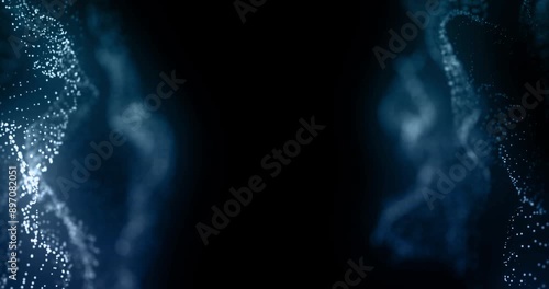 The watermark will not be included on Wall mural.: Futurist movement abstract blue matrix vertical lines and dots slowly floating like a fluid on black